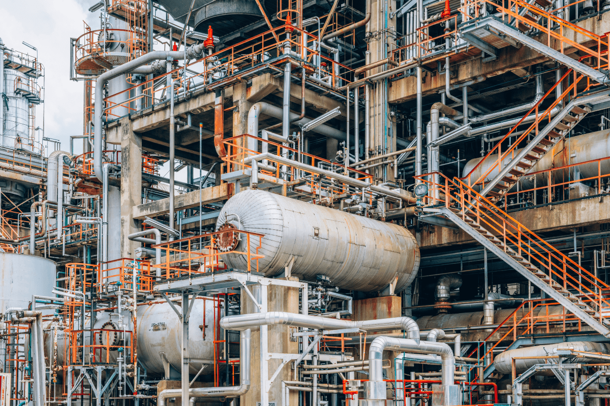 Plant-Wide Piping: Cooling water, solvent lines, and maintenance work across 8 units.