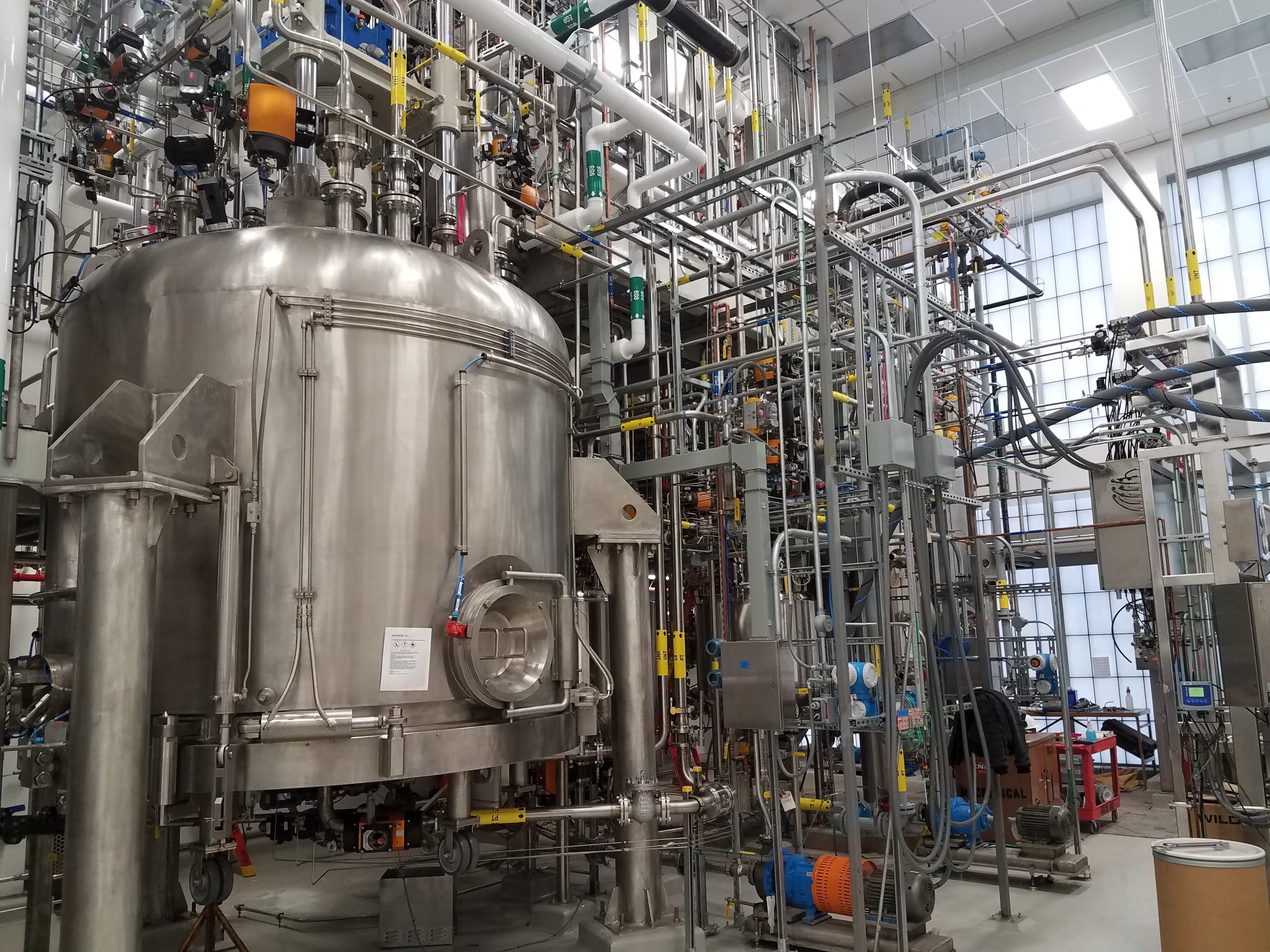 Reactor Installation: 4 glass-lined reactors with seismic bracing.
